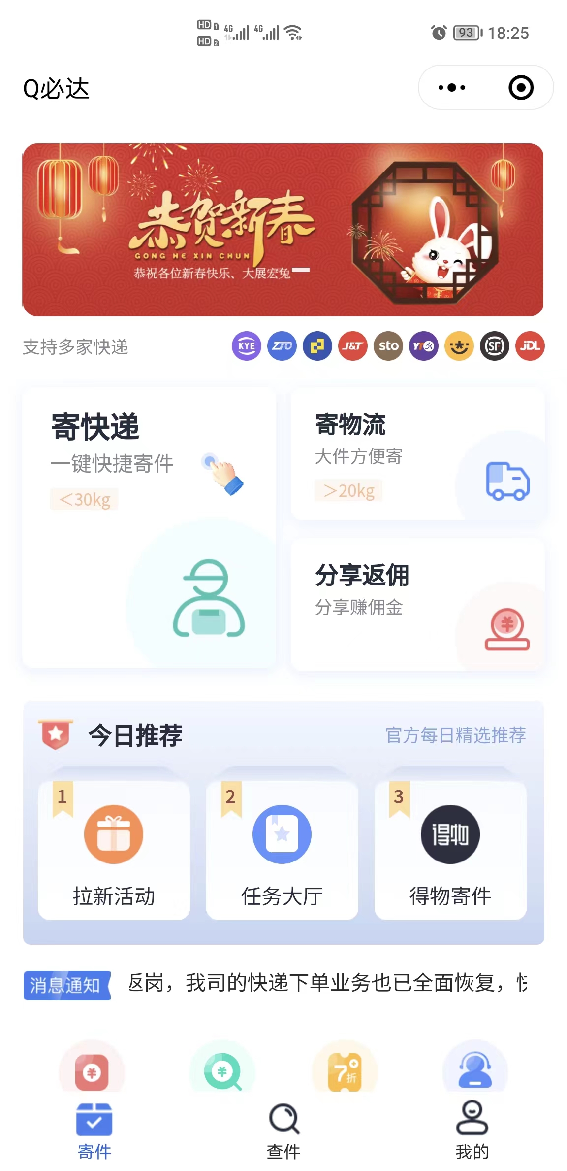 聚合快递,寄件上门取件,操作烦简,好寄快递-Q必达 寄快递是一项必要而繁琐的任务,需要选择可靠的快递公司并花费时间前往快递网点寄送。而Q必达作为一款聚合快递的服务软件,极大地方便了人们的寄送需求。Q必