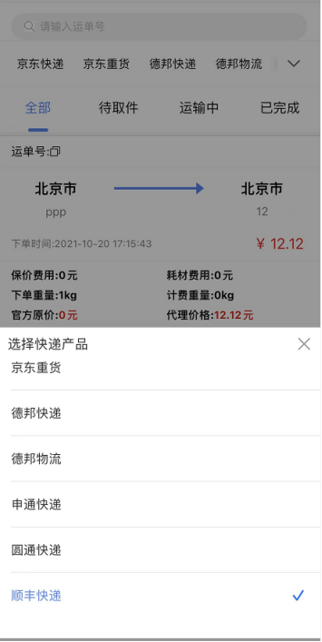 1. 根据上级代理提供的渠道,选择所需要下单的快递。